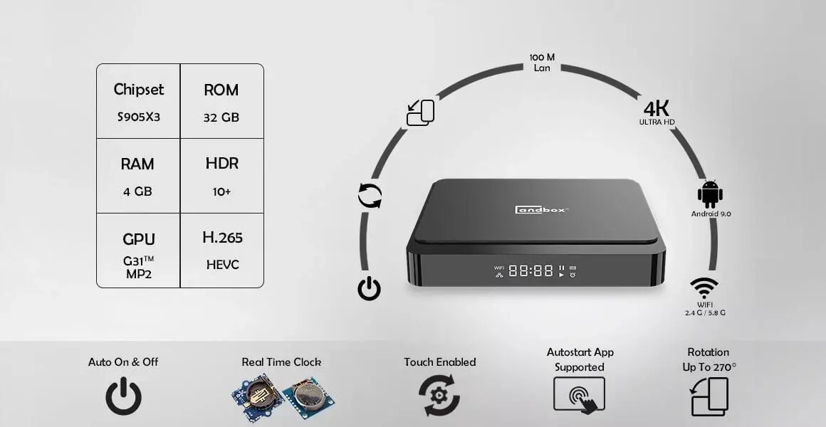 - CPUS905X3 64-bit quad core ARM® Cortex™ A55 CPU