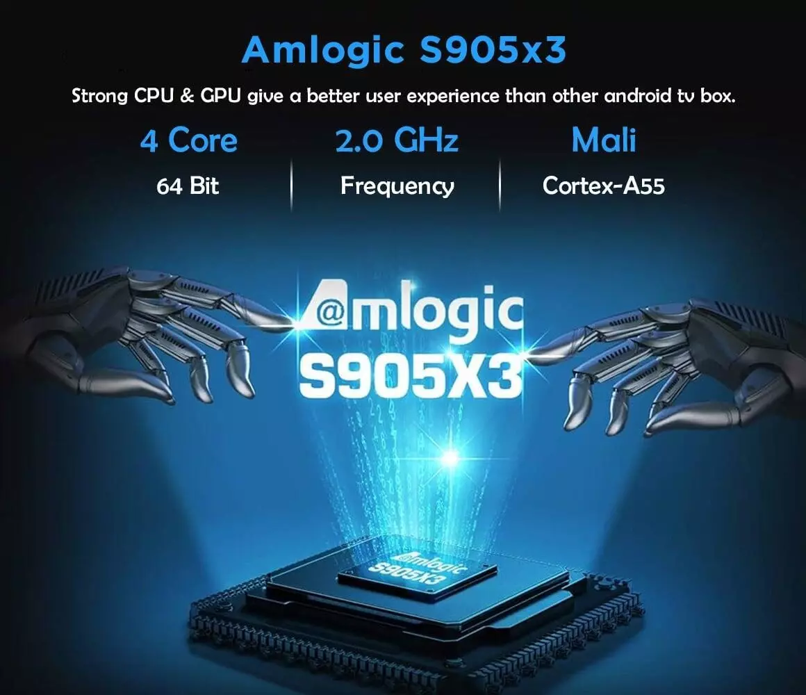 - CPUS905X3 64-bit quad core ARM® Cortex™ A55 CPU